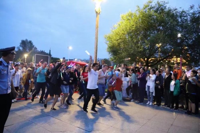 伴随着电子乐队演唱会的歌声,夜跑活动有序开展,绚丽多彩的江堤夜景,摩肩接踵的夜跑队伍,大家手持荧光道具,充分体现了夜跑活动浪漫时尚的荧光元素。由于天色渐晚,为保证人身安全,嘉荫县法院的干警们在活动中互相照应,互相鼓劲,气氛十分融洽,所有同志都坚持走完了全程,领取了荧光纪念手环。