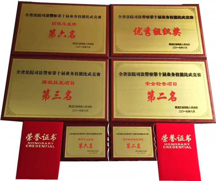 刻苦的训练,过硬的本领,坚强的意志,忠诚的信念终于收获了丰硕的成果。伊春中院比武代表队凭借高昂的斗志、优良的作风、坚强的意志在全省16个参赛队伍中脱颖而出,取得了团体总成绩第六名的优异成绩,同时荣获优秀组织奖。在团体科目竞赛中,获得了安全检查科目第二名、擒敌技能科目第三名、处突技能科目第四名的好成绩。赵建佳获得男子个人全能第六名、体能科目第二名的好成绩。