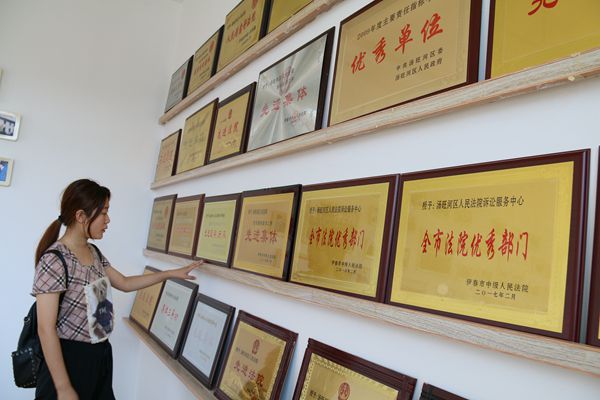 来到荣誉室,一张张老照片,一块块奖牌、一面面锦旗代表着法院干警共同奋斗的成果,这也是法院干警在改革创新的路上留下的印记。