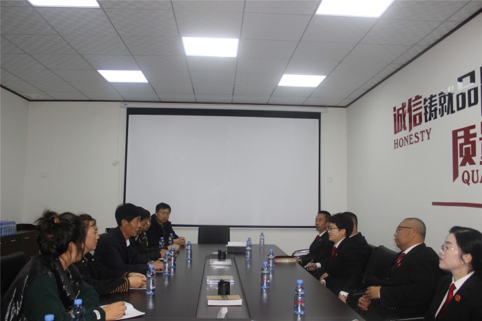 座谈中,乌翠区法院党组书记、院长徐苇兰详细了解企业基本情况、生产经营情况,询问企业在项目推进过程中的法律难题,对企业经营中存在的法律问题和难点进行分析,并为企业详细讲解了法院“延时服务”、“点对点”服务、“绿色通道”等利企便企惠企政策。同时,对企业用工、经营合同签订、清理债权债务关系等提出了司法建议。
