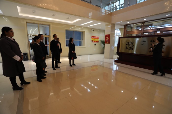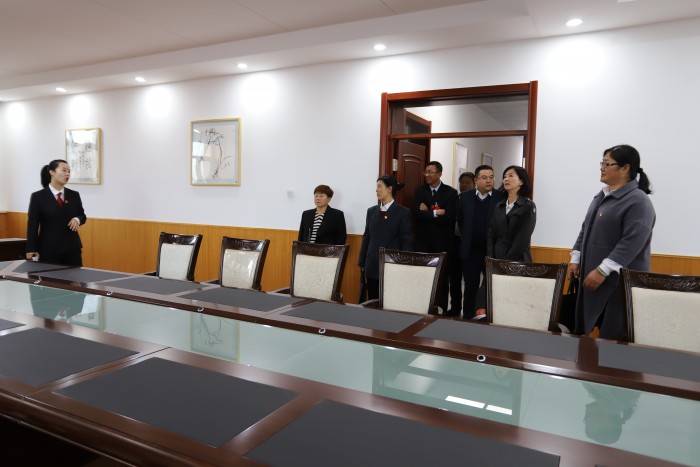 在讲解员的带领下,代表们先后参观了诉讼服务中心、刑事审判庭、图书室、书画摄影展室等办公场所。