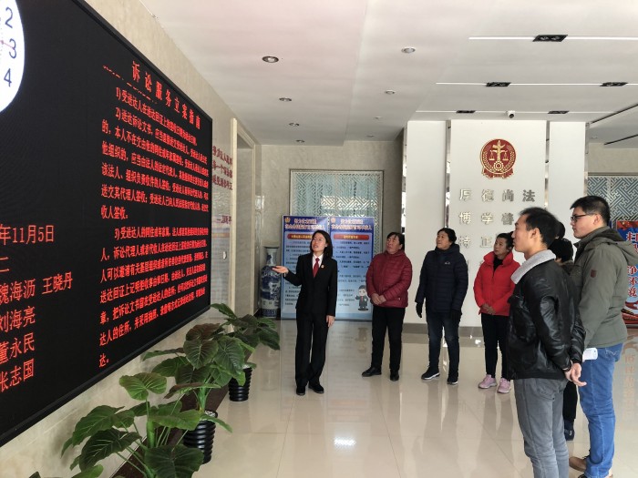 参观过程中,社区干部在认真了解立案、开庭、执行等司法程序的同时,也亲身体验到了智慧法院建设所带来的高水平便捷服务。
