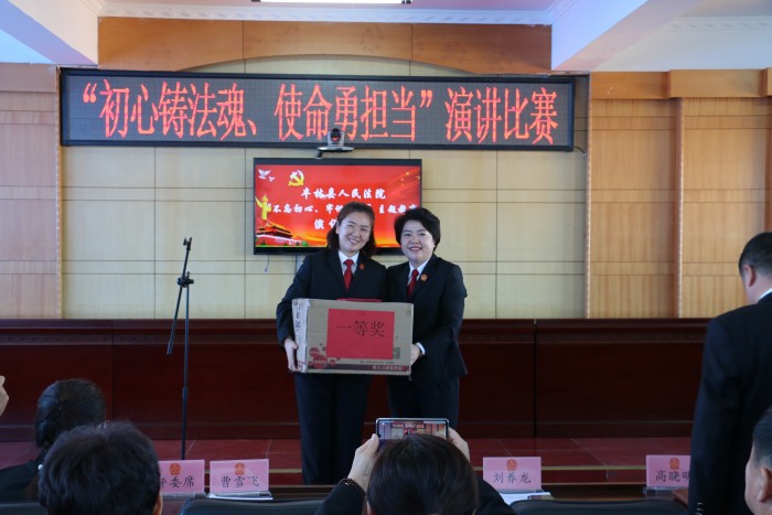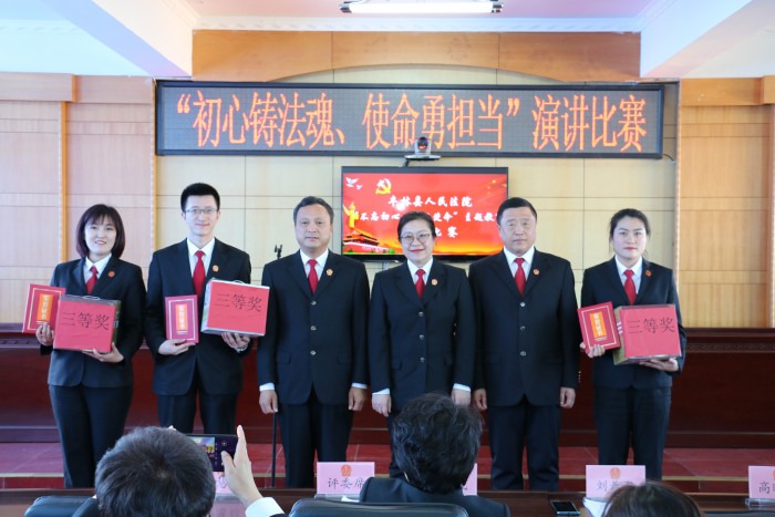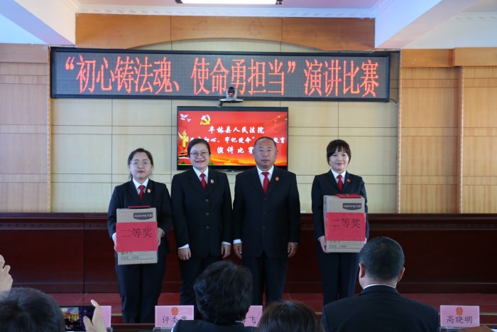 经过两个多小时紧张有序的角逐,评委们公平公正现场打分,比赛共评出一等奖1名,二等奖2名,三等奖3名,纪念奖8名。红星法庭赵春颖以《不忘初心跟党走》为题的演讲,从14名参赛选手中脱颖而出,荣获一等奖。