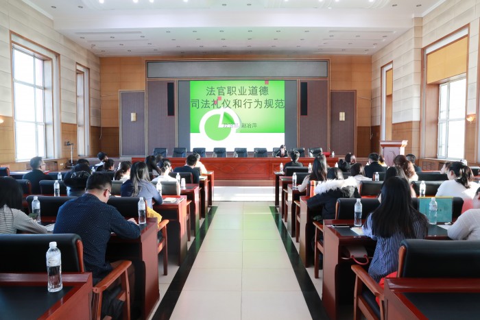 伊春中院党组成员、政治部主任赵冶萍主持开班仪式并在讲话中提出要求:新招录公务员要尽快完成身份转变,开好局、起好步,牢固树立理想信念,不断提高自身能力,做到清正廉洁自律,树立良好形象,同时要珍惜此次培训机会,做到学以致用。随后,赵冶萍将三十余年的法院工作经验融会贯通,为学员讲授了法官法、法官职业道德,使学员深受启发,思想上受到洗礼。