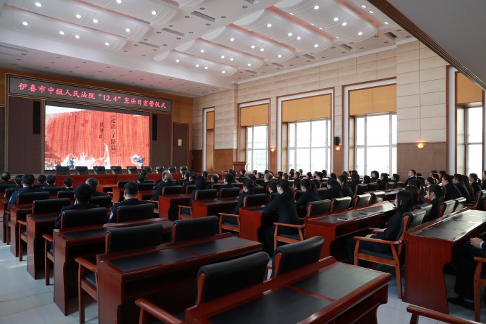 此外,伊春中院还通过张贴宪法宣传海报、室内外LED屏幕投放宪法宣传标语等多种方式营造氛围,推进宪法精神深入人心。