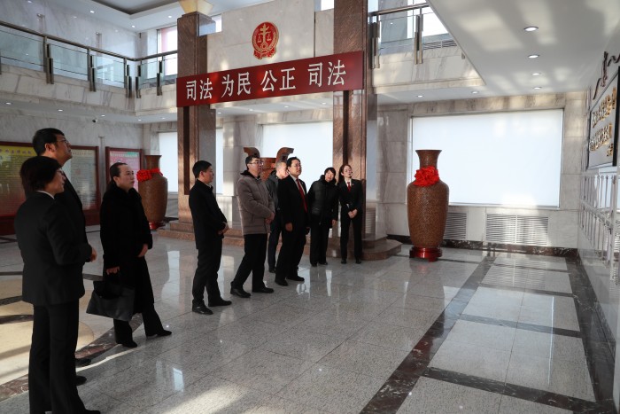 宣誓结束后,韩日强邀请到访的人大代表、政协委员参加“宪法日”公众开放日活动,在六楼党员之家观看了伊春两级法院干警参与拍摄的快闪作品《我和我的祖国》并开展座谈交流。韩日强指出,人民法院的工作离不开人大与政协的支持与监督,希望彼此加强沟通交流,强化日常互动,促进工作质效提升。