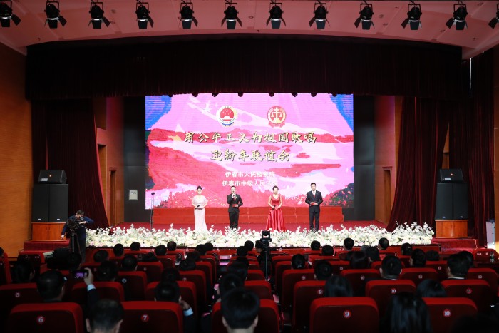 12月27日,由市中院、市检察院联合举办的“用公平正义为祖国歌唱迎新年联谊会”在市检察院隆重举行,两院机关全体干警欢聚一堂,以检察官的名义放歌家乡绿色化转型发展的礼赞,以法官的名义吟咏关于祖国繁荣昌盛的诗篇。