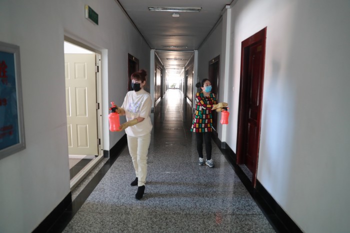2月2日,按照七项工作机制有关规定,伊春中院在干警返岗前日组织人员对办公楼进行了全面消毒,在审判法庭、走廊、电梯、楼梯、卫生间、会议室等公共区域通过喷洒消毒液、开窗通风等方式确保做到消毒不留死角,维护良好干净环境。根据疫情防控阻击七项规定,伊春中院建立每日消毒制度,并将对机关大楼及人员出入频繁的场所进行每日消毒通风,对办公室、会议室、食堂等功能性场所进行定期通风消毒。