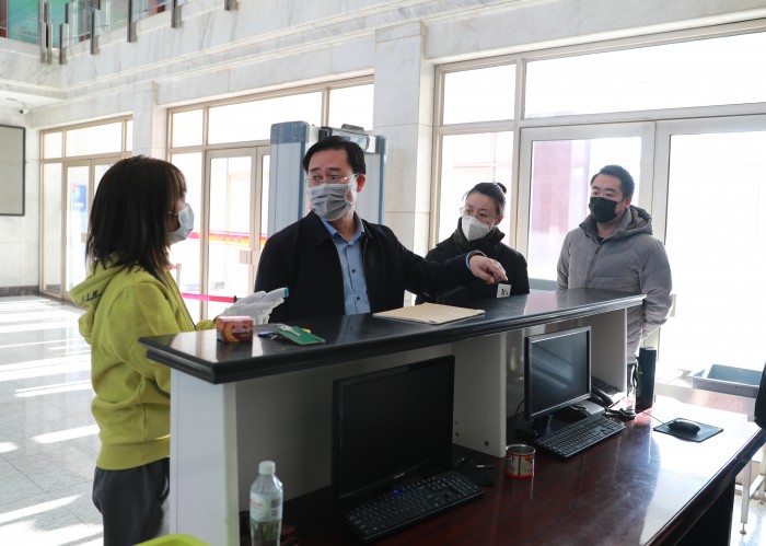在二楼共享大厅,韩日强检查监测机制落实情况,查看人员登记记录,详细了解监测机制操作流程,向返岗干警祝贺新春的同时一再叮嘱要加强防疫工作、确保健康安全,并进一步提出了具体工作要求,院机关干警及外来人员必需在接受体温检测合格后方可进入办公区域,除正门外封锁其他出入口以免发生漏测,同时负责测量体温工作的干警须加强自身防护,进一步规范操作,防疫无小事,必须从严从细把制度落到实处。