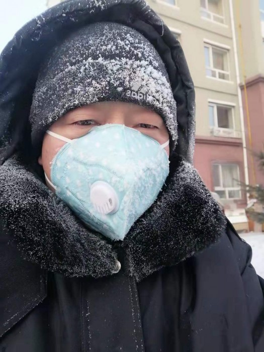 凌晨六点,多数居民还在温暖的家中熟睡,干警已经准时到位,因为凌晨气温过低,不过一刻钟,帽子上、睫毛上、口罩上、衣领上结了厚厚的一层冰霜。