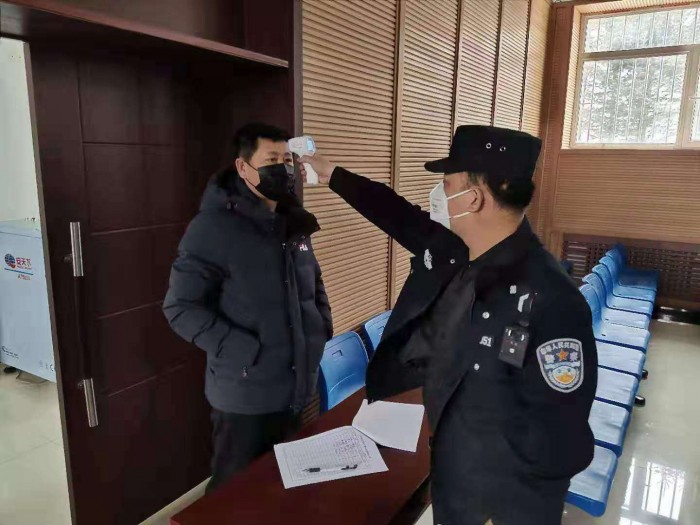 执行局局长认真执行院党组成员带班工作制度,按时到达单位,带头坚守工作岗位,为执行干警提振士气,在进入办公楼之前接受体温检测。