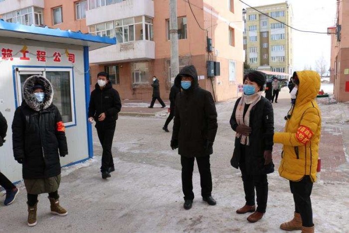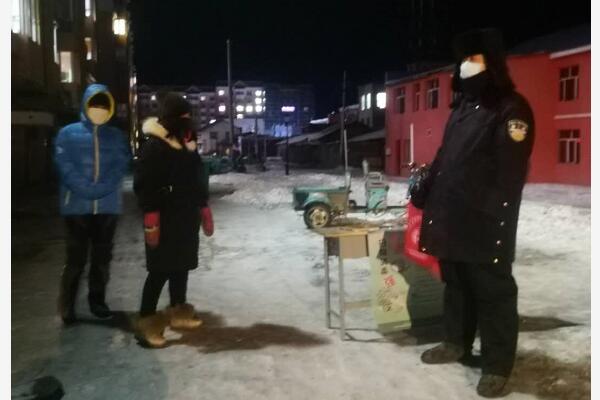 又是一个深夜,天地一片黑暗。但是有一点亮光,始终萦绕在小区门前。这是人睡意最浓的时候,也是熬夜人最疲倦的时候。实在顶不住了,他们又拿出了一根香烟,借着烟草辛辣的刺激,又能熬过半个小时。在五营,值夜班的人是宫大彬、王利丰;在新青,他们是张祥君、齐敬海。一个又一个寒冬的深夜,他们是怎么熬过来的,我们无法体会,只能祝他们保重。