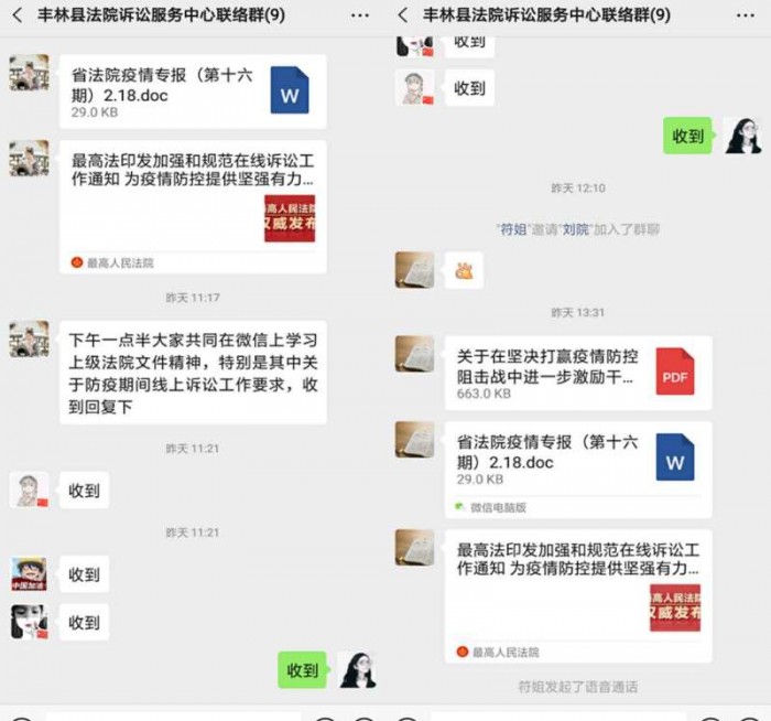 学习活动分两部分,首先,刘养龙(原新青法院副院长)带领大家学习了省高院印发的《关于坚决打赢疫情防控阻击战中进一步激励干部担当作为的通知》。之后,诉服中心负责人符玉杰组织大家学习了省高院印发的《省法院疫情专报(第十六期)》和最高院印发的《最高法印发加强和规范在线诉讼工作通知》。通过学习讨论,大家认识到虽身处非常时期,也绝不能懈怠工作,要在战“疫”中努力工作、敢于担当、尽已所能;还了解到全省其他家法院在疫情防控期间的好做法、好经验,从而帮助自身查缺补漏,更加做好疫情期间线上诉讼服务工作,为人民群众提供优质高效诉讼服务。