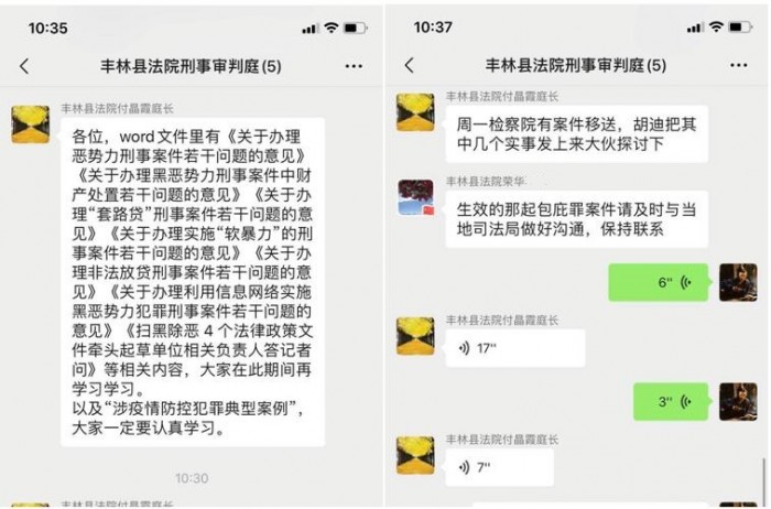 2月28日,刑事审判庭全体干警利用微信进行了“扫黑除恶”“涉疫情防控犯罪典型案例”专项学习。荣华(原红星法院副院长)带领大家学习了《关于办理恶势力刑事案件若干问题的意见》《扫黑除恶 4 个法律政策文件牵头起草单位相关负责人答记者问》等文件,刑事审判庭负责人付晶霞精选了涉疫情防控犯罪典型案例组织大家进行了学习讨论。通过本次学习,不断提高解决新问题新矛盾的能力,从而做到准确适用法律,为有效打击此类犯罪奠定坚实的基础。