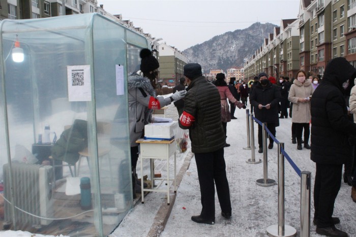 按照金林区领导小组指挥部的相关要求,3月4日,伊春市金林区部分小区首次开放,允许居民外出购买生活用品,每户每两天外出一人。金山屯镇杜鹃小区卡点和西林法庭卡点防控小区均在今天开放之列。为减少人员聚集、规范居民外出购物行为,金林区法院院党组书记、院长张金华及部分干警主动来到两个卡点支援,助力“首日出行”有序进行。
