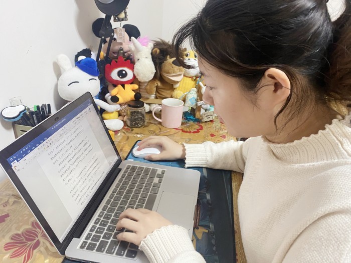 单欣:我们叫她“钢板女战士”,腰部受伤佩戴钢板护腰带也要坚持上一线,在防疫志愿工作之余,她也不忘本职工作,用小小的手机制作财务报表。(小编想说:腰间盘突出,工作更突出,为你点赞。)