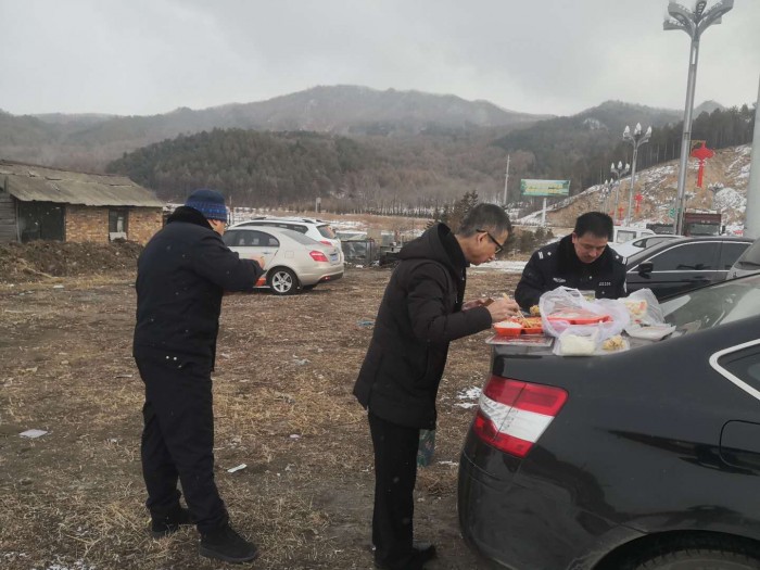 她说:“你们每天都在前方执勤,战在一线,真是辛苦了。你们要时时注意安全,保护好自己。这是我刚做好的热乎饭菜,你们趁热吃吧!”她不仅是热心群众,更是南岔县法院副院长许柏刚的爱人。每天24个小时的坚守,值勤干警只能在换班的间隙匆忙地吃上一口饭,此时的热乎饭菜,胜过饕餮盛宴,可以让他们及时补充能量,更有力地驻守在疫情防控的第一线。由于所有餐饮店均未开门营业,执勤干警的用餐成了大问题,得知该情况后,许柏刚的爱人便主动为执勤干警做起了午饭,热乎乎的饭菜,温暖了所有执勤干警的心。
