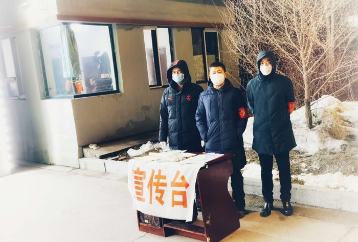 3月19日早7时,天气晴,温度-9℃,伊春市中级人民法院第一班执勤干警准时到达龙栖湾小区防护点,佩戴袖标和防护用具开始了一天的防疫执勤工作。