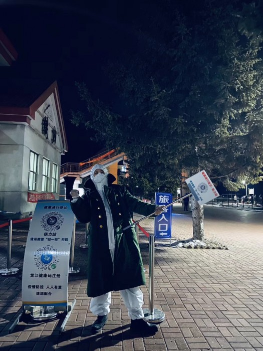 “请问你从哪里来?来铁力做什么?”铁力市火车站防疫服务点协调组成员、铁力市人民法院干警顾委在铁力火车站卡点每天要重复询问相似的问题上百次。按照指挥部的要求,他需要对来往铁力市人员进行排查、滞留、分流、隔离等措施。自2020年2月23日上岗至今,他共排查到铁力的旅客近万人,境外游客数十人。在这个特殊时期,在这座离别的车站里,在他的身边也发了不少感人泪下的事情。