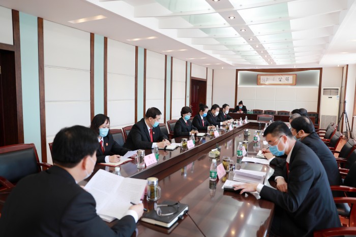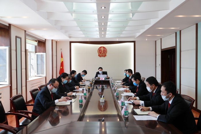 韩日强院长强调,要深入学习4月8日中共中央政治局常委会上习近平总书记讲话精神,结合法院工作实际贯彻落实 “外防输入,内防反弹”总体要求;要针对当前全员上岗的实际情况,加强法院内部防疫工作,做好办公区域消毒、进入人员体温检测、工作人员个人防护、外来人员登记检查等防控措施;要认清伊春作为边境城市疫情防控形势严峻的实际情况,按照市委部署积极参加社会管控工作,保障服务社区防疫工作力量,完成好下沉社区值守工作任务;要认真学习上级机关和兄弟法院疫情防控期间加强管理、推进工作的有益做法和成功经验,研究制定切实可行的疫情防控期间的管理办法和工作制度,推进防控工作制度化、常态化、科学化。