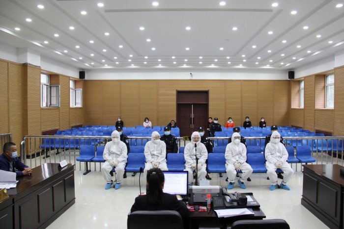 庭前,工作人员对押解车辆、审判场所进行全面消杀,安排专人对参加庭审的人员进行体温测量登记,旁听人员提前提交核酸检测报告、30日行动轨迹报告。庭审中,被告人佩戴口罩、护目镜、手套、脚套、着防护服。该两起涉恶案件庭审过程公正高效、规范有序。