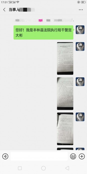 疫情期间,丰林县法院执行干警通过充分运用“微信”这一互联网平台审慎灵活开展执行工作,已成功执结了多起执行案件。这是在疫情不断变化的形式下,执行干警对办理执行案件的全新探索,在节省人力、物力的同时,不仅大大的节约了时间成本,更是通过“指尖”的随时沟通,拉近了当事人与执行干警之间的距离,彰显了司法为民的温暖与力量。