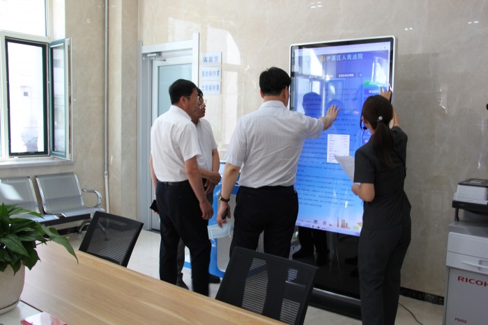 在科技法庭,讲解员介绍了庭审系统、语音识别系统和庭审直播系统的功能。随后,一行人参观了新扩建的诉讼服务中心接待区、安检区、多功能区,直观地了解到伊美区法院在践行“努力让老百姓打官司不求人”庄严承诺、“一站式多元解纷和诉讼服务体系建设”等方面做出的努力。在执行指挥中心,执行干警通过展示执行案件流程信息管理系统、执行网络查控系统等功能,详细介绍了执行工作情况。在党建活动室和党建文化长廊,众人为伊美区法院“以党建带队建,促审判”的工作点赞。