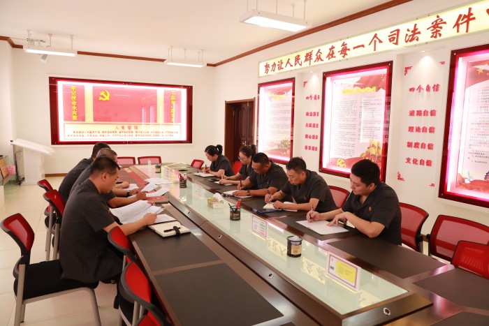会议最后,王刚作为主管院领导,为支部党员干警讲了一堂题目为“坚定信念 廉洁自律 做新时代人民满意政法干警”的生动党课,引导支部全体党员筑牢思想防线,做到警钟长鸣。