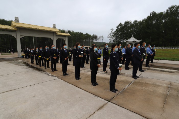 天色阴郁,仿若沉淀。南山烈士陵园内,站着衣着齐整,神色肃穆的公职人员。大家手拿菊花,沉默着轮番向英烈献上,是祭奠、是敬意更是激励。