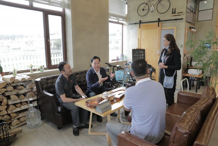 在雪林菌业有限责任公司,韩日强院长先后到产品展厅和研发生产基地实地了解企业生产经营情况,就企业科技研发、产品市场营销、落实法律服务等问题与徐立经理讨论交流。在岭尚欲雪有限公司,韩日强院长参观了民宿酒店,与企业合伙人就营销推广、企业间合作、品牌保护等问题进行了深入探讨。
