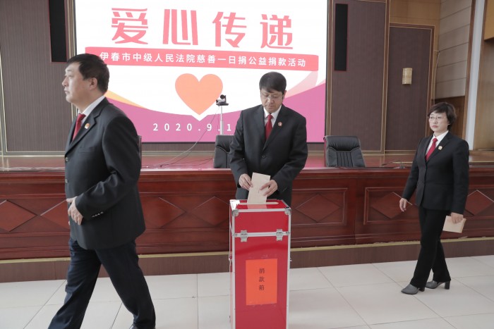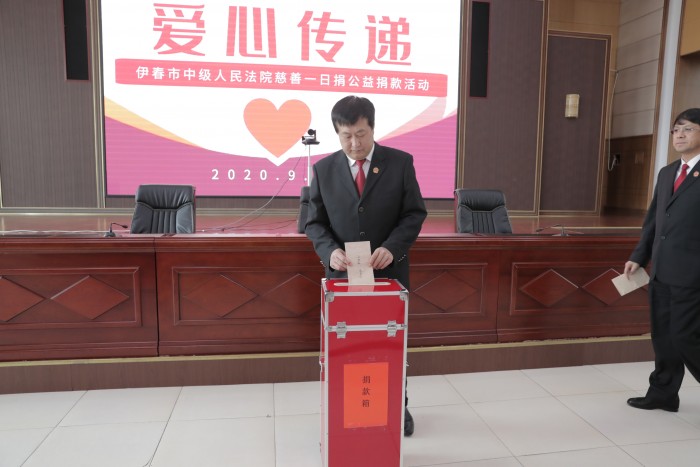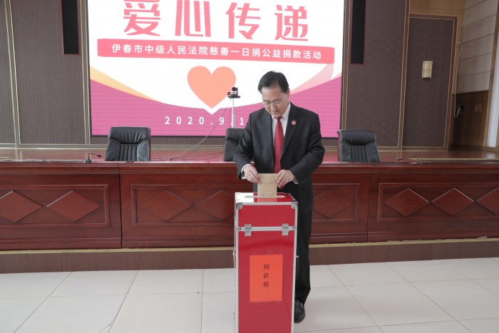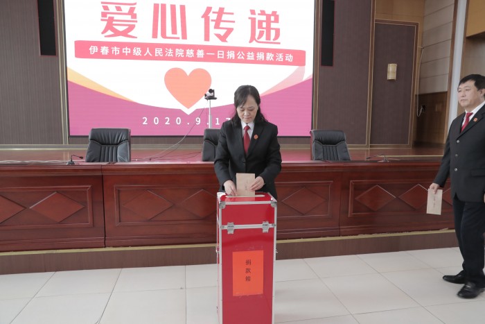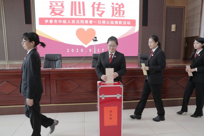 为贯彻落实《中华人民共和国慈善法》,推进我市慈善事业的发展,按照市委、市政府的要求,伊春市中级人民法院于9月17日下午14时举办“慈善一日捐”公益捐款仪式。