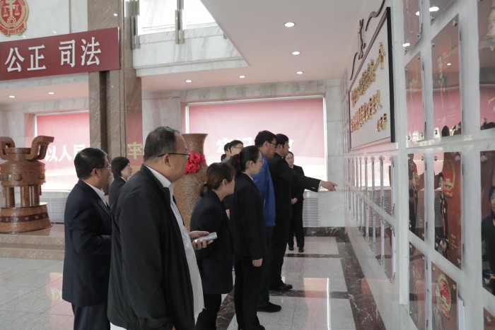 在伊春中院党组成员、一级调研员林晓明和党组成员、副院长赵冶萍陪同下,中国邮政集团公司伊春分公司纪委书记、副总经理曲淑梅和寄递事业部党支部书记、运营管理部经理张晓东带领公司中层以上干部先后参观了员额法官墙、审判法庭、法警支队、诉讼服务中心、立案大厅等场所,对法院的各项工作有了初步认识。