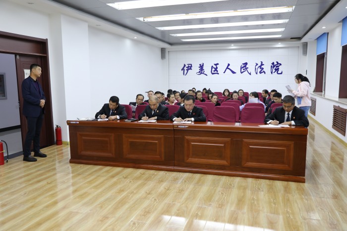 伊美区法院党组书记、院长朱科华围绕深入推进“两个坚持”专题教育、“三释”警示教育和“三个规定”专项整治工作情况,落实全省、全市法院工作会议情况以及落实基层党组织组织力提升工程情况等三项工作进行了汇报。督察组对伊美区法院三项工作开展情况表示肯定,对新诉讼服务中心的建设成果及焕然一新的干警精神面貌表示高度赞扬。