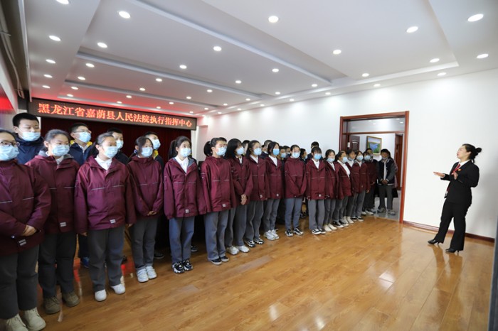 参观结束后,同学们旁听了一起关于不当得利的民事案件。庭审前,法官结合案件给大家讲解了相关法律知识,介绍了庭审的步骤及法官、书记员、法警、人民陪审员等工作职能,回答了同学们提出的问题。