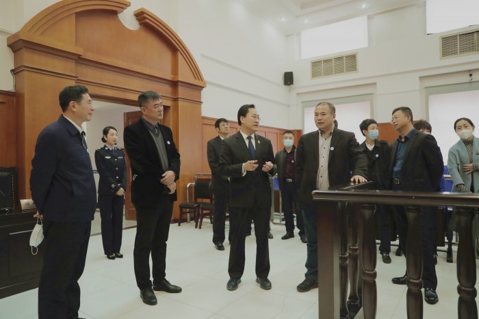 为深化“让人民群众走进法院,让法院走进人民群众心中”这一理念,进一步营造法治化营商环境,10月21日,伊春市中级人民法院邀请伊春市、县两级工商联干部,市直属商协会会长一行30余人走进法院参观交流,伊春中院党组书记、院长韩日强全程陪同。