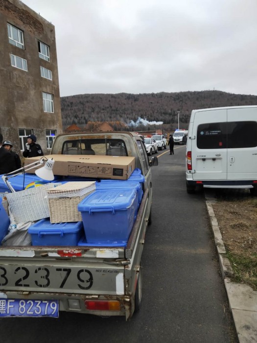 2020年10月22日上午8点30分,伊春市中院调集的法警10人,警车6部以及执行干警20余人前往伊春市上甘岭区林业区的强制迁出地点。