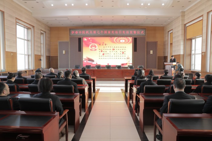 12月4日是我国第七个国家宪法日,12月3日,伊春市中级人民法院在本院举行“12·4”宪法日宣誓仪式,提高全院干警宪法意识,强化宪法观念。