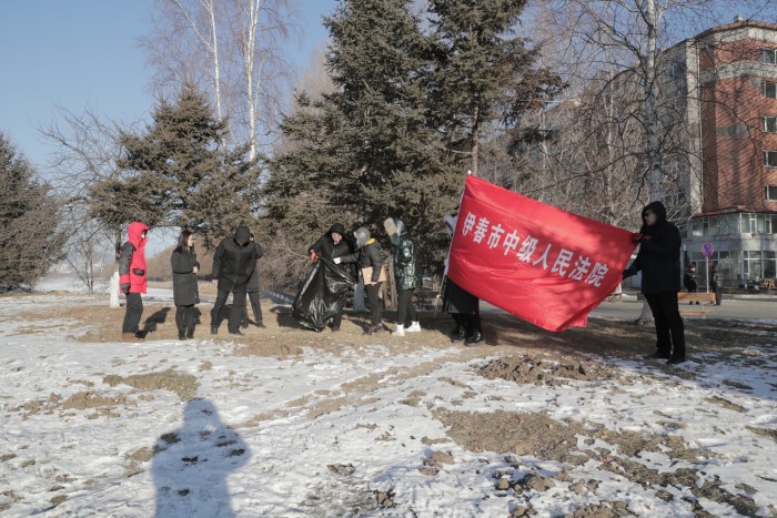 12月9日上午,伊春市中级人民法院深入党建联盟社区所辖的桃源小区,开展“机关党旗红——在文明城市创建整改中走在前、作表率”主题党日活动。