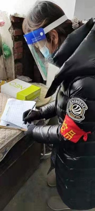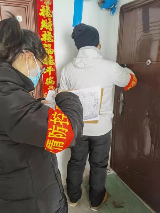 小区里厚厚的积雪已布满他们的脚印,室外的温度已达-27℃,但奔波于各个楼栋的他们却都流下了艰辛汗水。寒风将他们汗水吹干,他们的脸也被吹得通红,手被冻僵。但这是他们的职责,疫情面前,责无旁贷。
