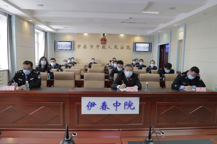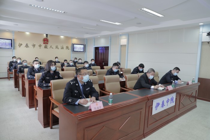 法警支队全体成员在伊春中院分会场参加会议,辖区各基层法院在本院分会场参加会议。