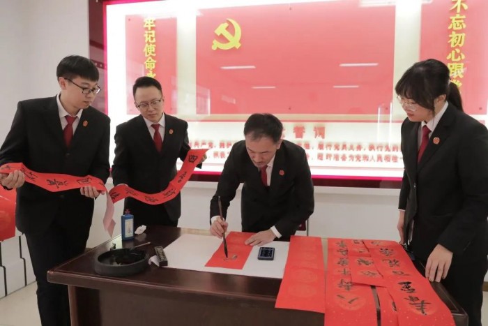 干警们写对子、送祝福
