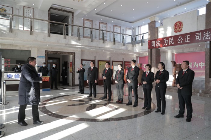 声声慰问暖人心、殷殷希望鼓干劲!2月18日,正月初七,农历新年节过后上班的第一天,伊春市中级人民法院党组书记、院长韩日强带领班子成员在中院机关共享大厅迎接返岗干警,并致以新年的美好祝愿。为新的一年谋好局、开好头加油鼓劲。