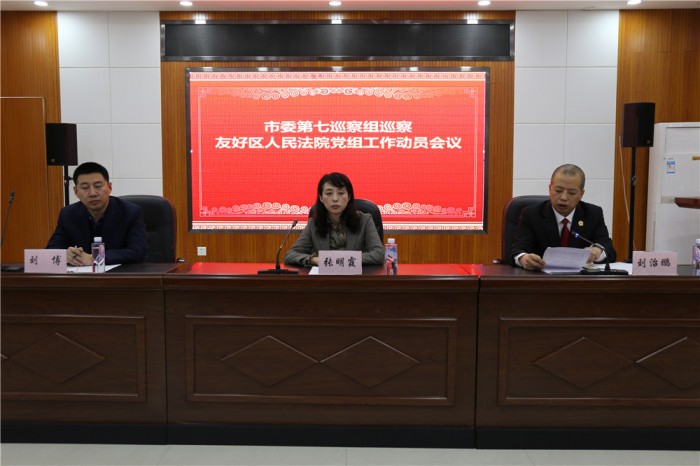 按照十二届市委第十轮巡察工作的统一部署,3月5日上午,市委第七巡察组进驻伊春市友好区人民法院召开巡察工作动员会。友好区人民法院党组书记、院长刘治鹏主持会议并作表态发言,市委第七巡察组组长张明霞作动员讲话。