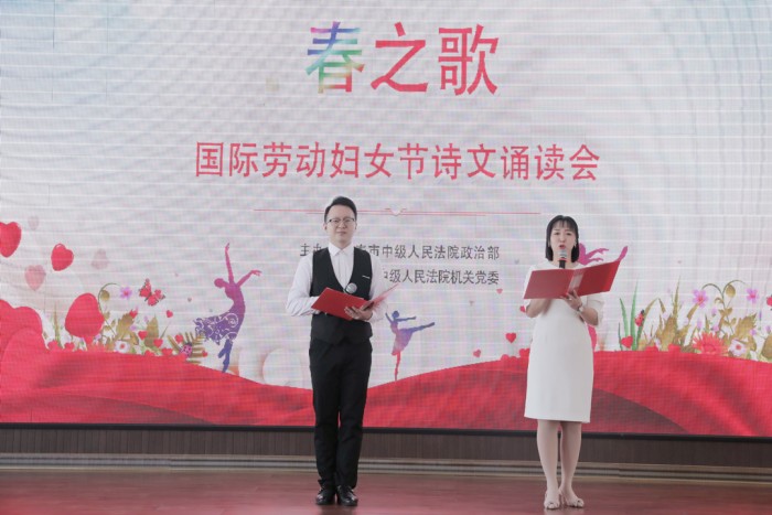 为深入贯彻落实好全市法院队伍教育整顿工作任务,全方位加强法院队伍建设,市法院党组以文化育人为手段,以庆祝国际劳动妇女节为契机,由市中院政治部、市中院机关党委共同举办《春之歌》诗文诵读会。旨在通过举办干警能普遍参与的生动活泼的文化活动,陶冶情操,抒发情怀,锻炼技艺,提升素质。