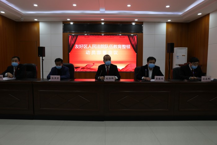 会上,依次传达了全国、省、市政法队伍教育整顿动员部署会议精神和区委书记印岩在全区政法队伍教育整顿工作动员部署会议上的讲话精神。宣读了《友好区人民法院队伍教育整顿工作实施方案》,就目标任务、对象范围、环节举措、组织领导等方案内容进行细致解读、精心部署。
