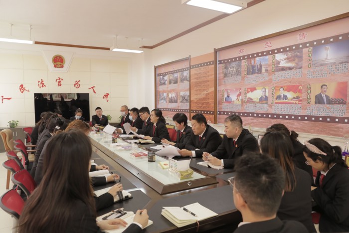 伊春中院立案二庭、审监庭、研究室、机关党委、行装处、办公室全体干警参加会议。