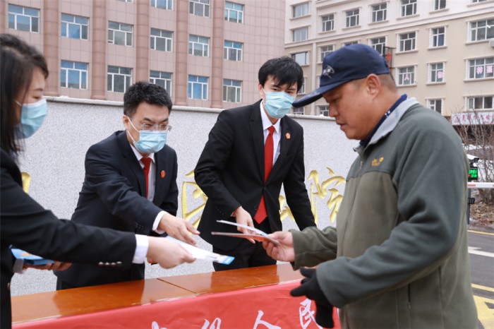 今年3·15国际消费者权益活动的主题为“守护安全 畅通消费”,在3月15日当天,伊春中院以“百点服务百姓”为主题,在市法院正门设立法律咨询服务台,开展权益日宣传咨询服务活动,通过发放宣传单等方式主动回应群众司法需求,以实际行动践行“我为群众办实事”实践活动。