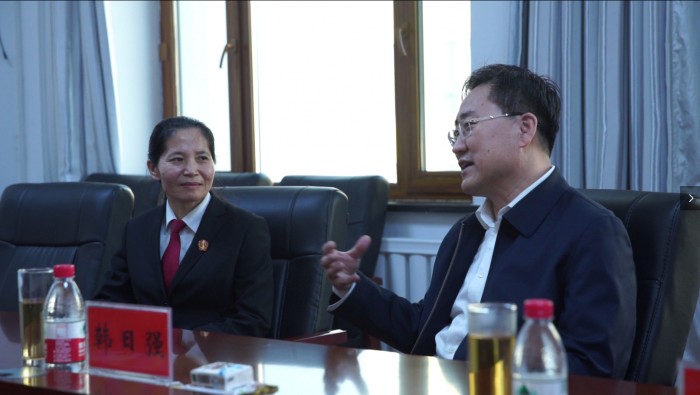 韩日强院长到诉讼服务窗口等重要办公区域实地检查指导,与各岗位干警亲切交流,查看队伍教育整顿宣传图板,查阅相关材料,听取铁力市法院汇报队伍教育整顿工作开展情况。