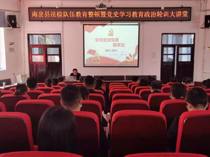 党校副校长戚元臻以《学党史、颂党恩、跟党走》为题,作专题辅导讲座。讲座从中国共产党创建和发展历程、新时代加强全面从严治党等方面,全面系统地讲述了中国共产党百年奋斗的光辉历程和宝贵经验及新时代加强全面从严治党的重点任务。本次辅导讲座政治站位高,针对性强,为南岔法院深入开展党史学习教育和推进队伍教育整顿提供了有益指导。