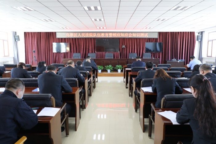为进一步推进队伍教育整顿工作深入开展,扎实巩固干警的理论知识,3月18日,伊春市乌翠区人民法院组织全院干警进行队伍教育整顿应知应会知识测试。